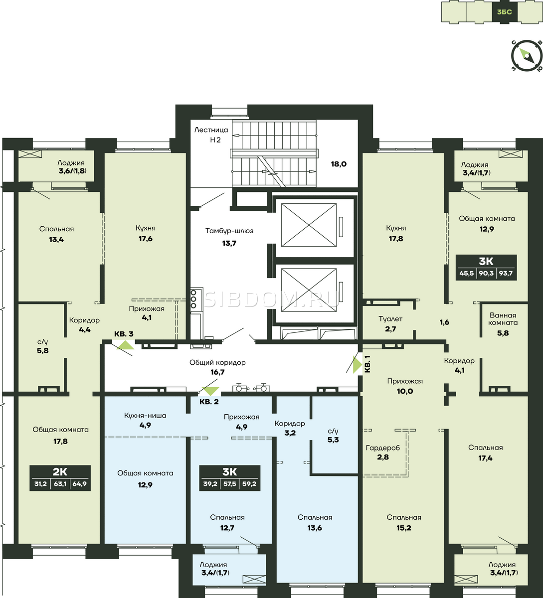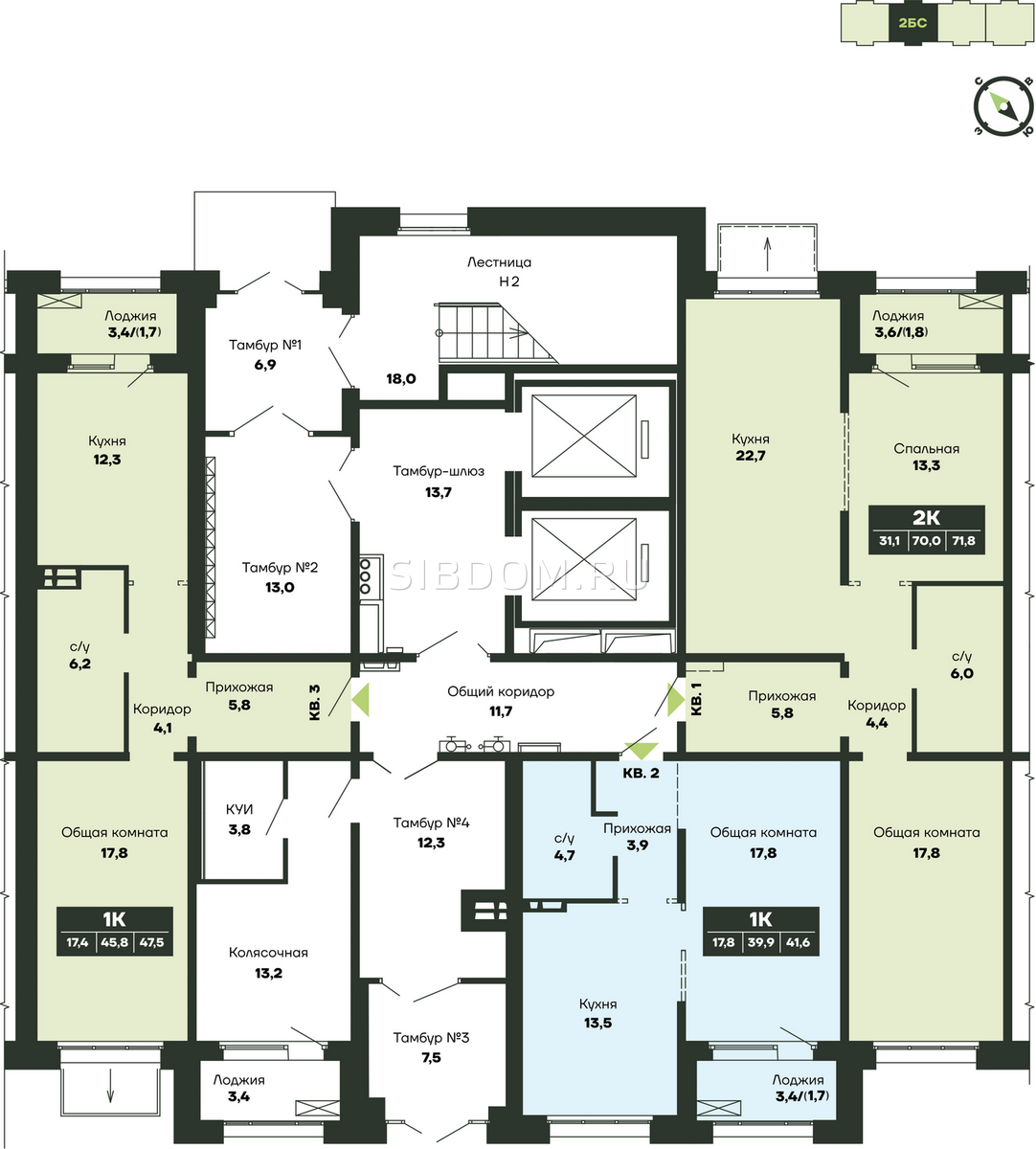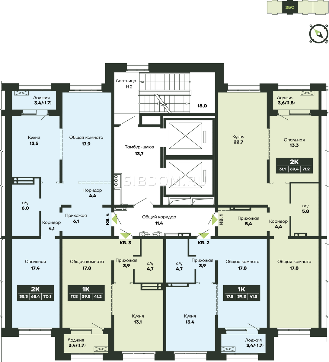 ЖК «Гренландия», двор «Лес» дом №4 - монолитный дом комфорт-класса переменной этажности. Площадь квартир от 27 до 94 кв.м.
