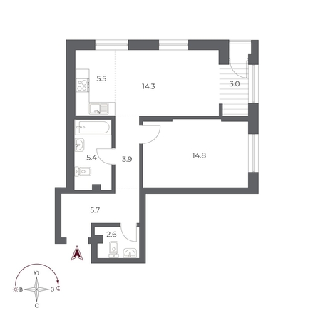 Общая площадь квартиры — 55.2 кв.м. Тип дома — монолит-кирпич. Компания-застройщик — Новый мир.