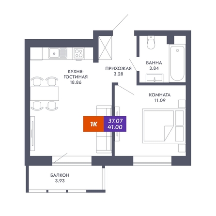 Общая площадь квартиры — 37.07 кв.м. Тип дома — монолит-кирпич. Компания-застройщик — Сибмонтажспецстрой.