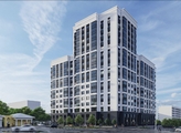 Архитектурная выразительность здания заключена в сбалансированной пространственной композиции из объемов структур разной геометрии, и создается с помощью вертикальных доминант остекленных лоджий