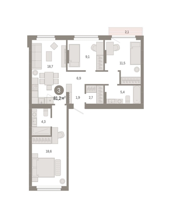 Трёхкомнатная квартира в квартале «Лебедевский» — это квартира с объединённой кухней-гостиной и тремя спальнями. Планировкой предусмотрены ниши для хранения вещей, отдельная гардеробная или шкафы в спальне, просторная ванная комната и гостевой санузел, собственная постирочная. Есть варианты квартир с тёплой лоджией, где можно разместить рабочее место, или открытой террасой.
