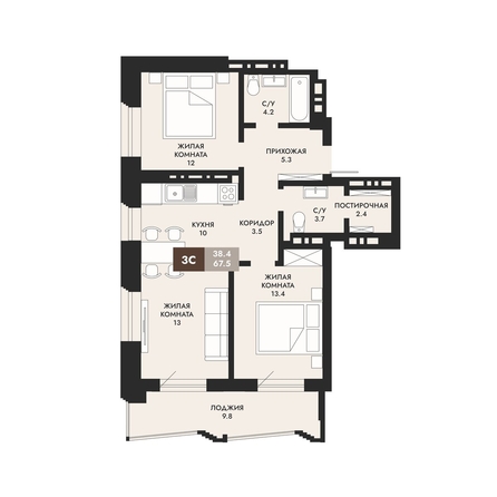 Общая площадь квартиры — 68.9 кв.м. Тип дома — монолит-кирпич. Компания-застройщик — Сибмонтажспецстрой.
