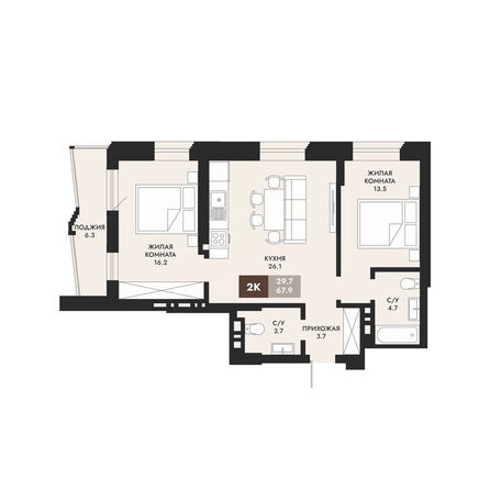 Общая площадь квартиры — 70.6 кв.м. Тип дома — монолит-кирпич. Компания-застройщик — Сибмонтажспецстрой.