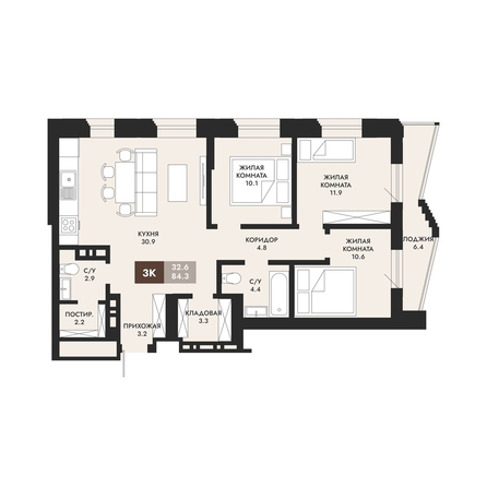 Общая площадь квартиры — 87.1 кв.м. Тип дома — монолит-кирпич. Компания-застройщик — Сибмонтажспецстрой.