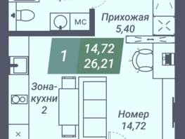 Общая площадь квартиры — 25.37 кв.м. Тип дома — монолит-кирпич. Компания-застройщик — Сибмонтажспецстрой.