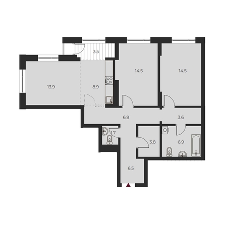 Общая площадь квартиры — 84.7 кв.м. Тип дома — монолит-кирпич. Компания-застройщик — Новый мир.