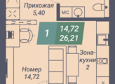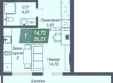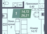 Общая площадь квартиры — 26.21 кв.м. Тип дома — монолит-кирпич. Компания-застройщик — Сибмонтажспецстрой.