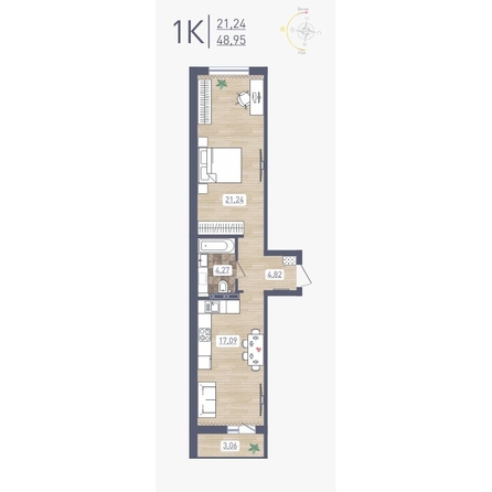 Продам 1-комнатную 48.95 кв.м. 13/17 этаж, монолит-кирпич, Новосибирск, Забалуева ул, 96.