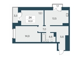 «В продаже 2-комнатная квартира, площадью 62.8, под номером 319 в новом Доме ЖК "Расцветай на Красном".» Расположен в «тихом центре», в 5 минутах пешком от станции метро «Заельцовская» и пл. Калинина – крупнейшей транспортной и инфраструктурной развязки города.