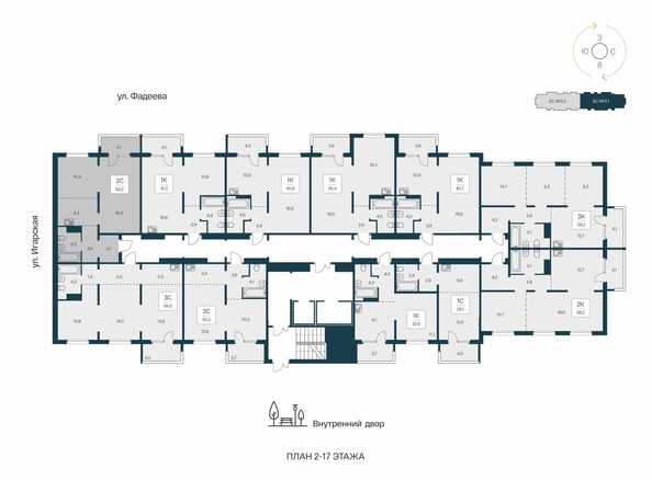 «В продаже 2-комнатная квартира, площадью 50.2, под номером 161 в новом Доме ЖК "Квартал на Игарской".» Жилой квартал «Расцветай на Игарской» - это счастливая жизнь в тихом и уютном квартале с увлекательным двором-парком!