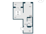 «В продаже 1-комнатная квартира, площадью 44.3, под номером 98 в новом Доме ЖК "Квартал на Игарской".»