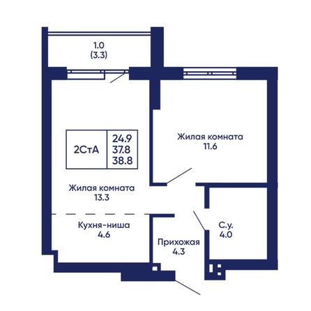 Для Вас в ЖК Gorizont есть квартира с ремонтом (1-комнатная квартира № 85, 38,9 кв²)!