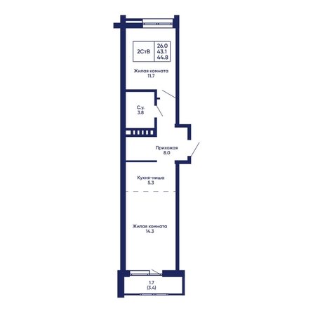 Для Вас в ЖК Gorizont есть квартира с ремонтом (1-комнатная квартира № 85, 38,9 кв²)!