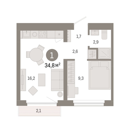 Однокомнатная квартира в квартале «Лебедевский» — это квартира с объединённой кухней-гостиной и отдельной спальней. Планировкой предусмотрены ниши для хранения вещей, отдельная гардеробная или шкаф в спальне, просторная ванная комната. Есть варианты квартир с тёплой лоджией, где можно разместить рабочее место, или открытой террасой.