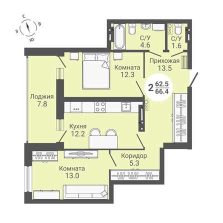 Продам 2-комнатную 66.4 кв.м. 8/17 этаж, монолит-кирпич, Новосибирск, Петухова ул, 170.