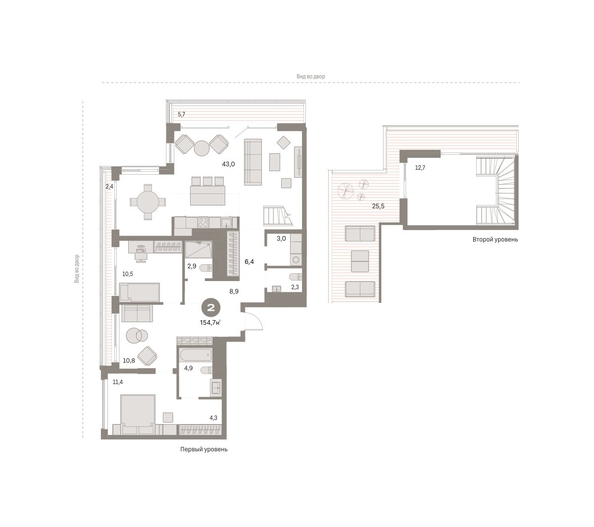 Квартира с кухней-гостиной и двумя спальнями в микрорайоне «Европейский берег». Особенности планировки: второй санузел, окно в коридоре, гардеробная, разнесённые спальни, предчистовая отделка, постирочная, балкон, терраса на крыше.