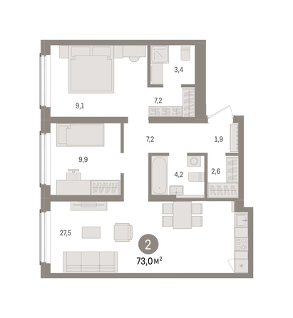 Квартира с кухней-гостиной и двумя спальнями в квартале Авиатор. Особенности планировки: гардеробная, предчистовая отделка, мастер-спальня. № квартиры в нашей базе: АВТ03-Ж3.2.3. Номер объявления SD54-1034672.