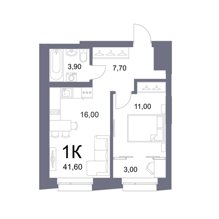 Общая площадь квартиры — 41.6 кв.м. Тип дома — монолит-кирпич. Компания-застройщик — Дом-Строй.