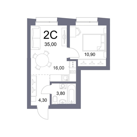 Общая площадь квартиры — 35 кв.м. Тип дома — монолит-кирпич. Компания-застройщик — Дом-Строй.