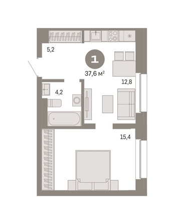 Однокомнатная квартира в квартале «На Декабристов» — это квартира с объединённой кухней-гостиной, отдельной мастер-спальней со встроенной гардеробной и большой ванной комнатой.