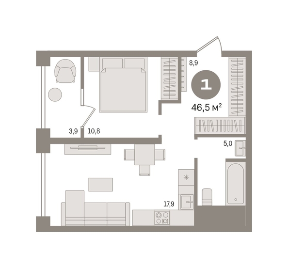 Квартира с кухней-гостиной и одной спальней в квартале «Мылзавод». Особенности планировки: тёплая лоджия, предчистовая отделка. № квартиры в нашей базе: МЛ-ГП4.2-9-9.6.4. Номер объявления SD54-1034926.