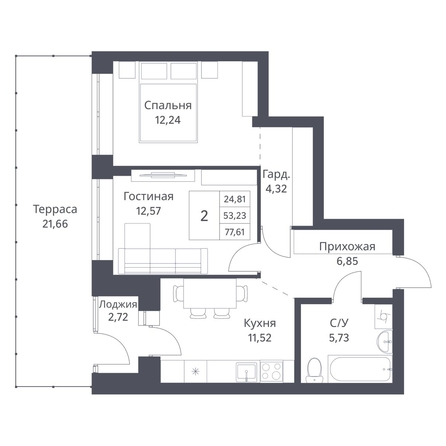 Продается 2-комн. квартира с отделкой White box. Квартира расположена на 1 этаже 18 этажного монолитно-кирпичного дома в миниполисе на Фадеева «Фора» от группы компаний «Поляков».