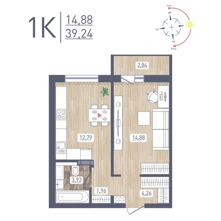 Продам 1-комнатную 39.24 кв.м. 3/17 этаж, монолит-кирпич, Новосибирск, Петухова ул, 16/3.