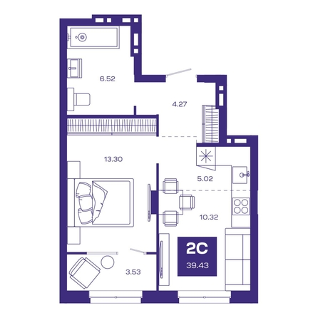 Общая площадь квартиры — 39.43 кв.м. Тип дома — монолит-кирпич. Компания-застройщик — Группа МЕТА.