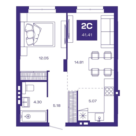 Общая площадь квартиры — 41.41 кв.м. Тип дома — монолит-кирпич. Компания-застройщик — Группа МЕТА.