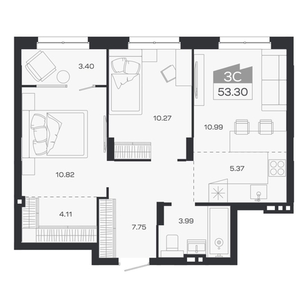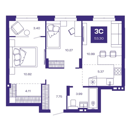 Общая площадь квартиры — 53.3 кв.м. Тип дома — монолит-кирпич. Компания-застройщик — Группа МЕТА.