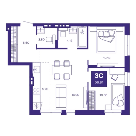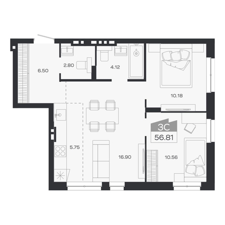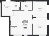 Общая площадь квартиры — 56.81 кв.м. Тип дома — монолит-кирпич. Компания-застройщик — Группа МЕТА.