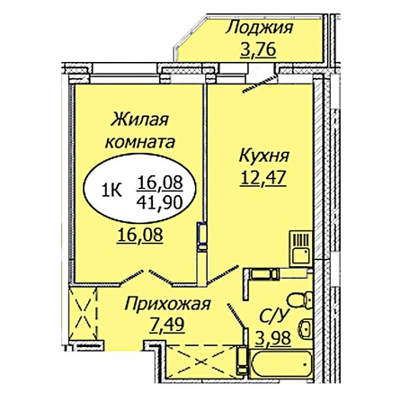 Общая площадь квартиры — 41.9 кв.м. Тип дома — монолит-кирпич. Компания-застройщик — БизнесСтрой.