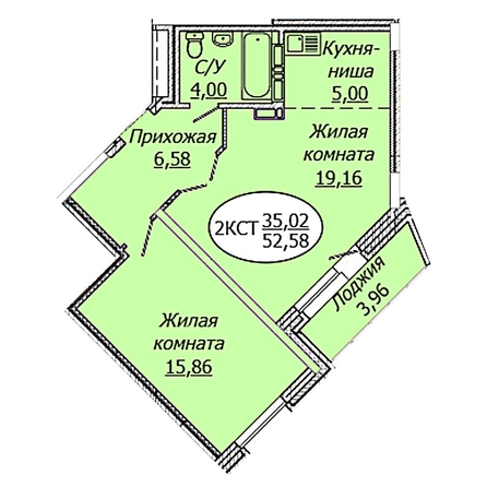 Общая площадь квартиры — 52.58 кв.м. Тип дома — монолит-кирпич. Компания-застройщик — БизнесСтрой.