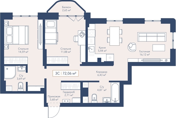 - на -1 этаже будет расположен подземный паркинг с прямым доступом к квартире;
