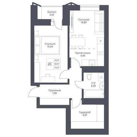 Продается 2-комн. студия с отделкой White box. Квартира расположена на 2 этаже 24 этажного монолитно-кирпичного дома в Акцентном доме «Актив» от группы компаний «Поляков».