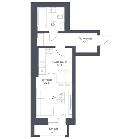 Продается 1-комн. студия с отделкой White box. Квартира расположена на 2 этаже 24 этажного монолитно-кирпичного дома в Акцентном доме «Актив» от группы компаний «Поляков».