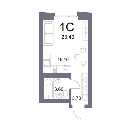 Общая площадь квартиры — 23.4 кв.м. Тип дома — монолит-кирпич. Компания-застройщик — Дом-Строй.