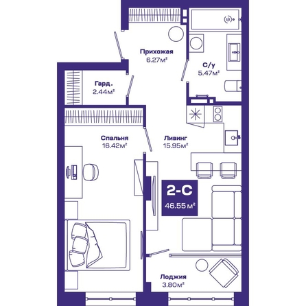 Общая площадь квартиры — 46.55 кв.м. Тип дома — монолит-кирпич. Компания-застройщик — Группа МЕТА.