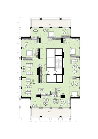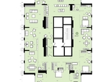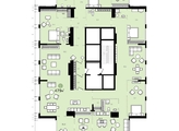 Квартира с кухней-гостиной и четырьмя спальнями в квартале «На Декабристов». Особенности планировки: второй санузел, окно в коридоре, гардеробная, окна в пол, вид во двор, панорамное остекление, свободная планировка, разнесённые спальни, мастер-спальня, терраса на крыше.