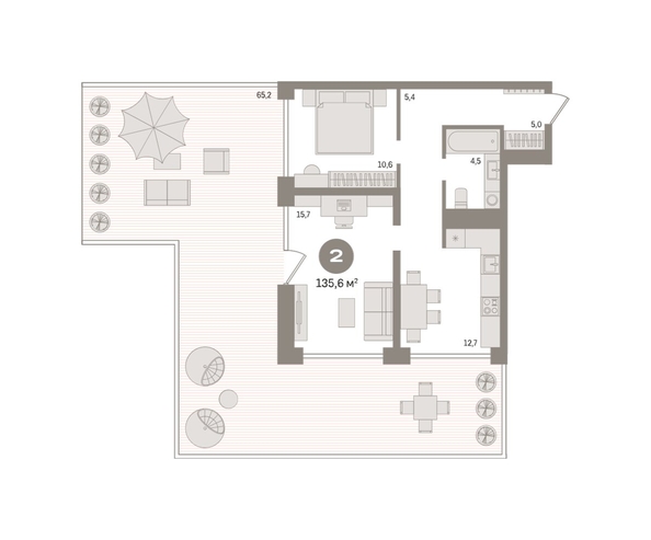 Двухкомнатная квартира в квартале «Мылзавод». Особенности планировки: предчистовая отделка, терраса.