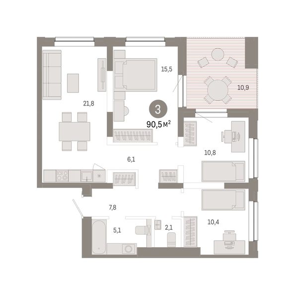 Трёхкомнатная квартира в ЖК «Евроберег» в 15 минутах от метро «Речной вокзал» — это квартира с объединённой кухней-гостиной и тремя спальнями. Купить 3-комнатную квартиру в Октябрьском районе Новосибирска выгодно напрямую от застройщика «Брусника».