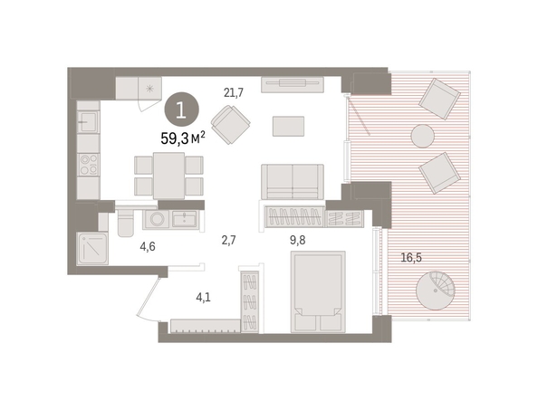 Квартира с кухней-гостиной и одной спальней в квартале Авиатор. Особенности планировки: вид во двор, панорамное остекление, свободная планировка, мастер-спальня, терраса. № квартиры в нашей базе: АВТ03-Ж2.1.1. Номер объявления SD54-1035570.