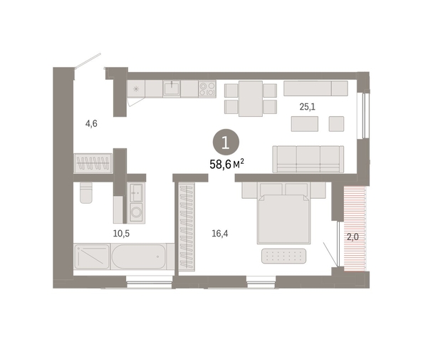 Квартира с кухней-гостиной и одной спальней в микрорайоне «Европейский берег». Особенности планировки: окно в санузле, лоджия, предчистовая отделка. № квартиры в нашей базе: ЕБ-ГП49-1-1.10.6. Номер объявления SD54-1035571.