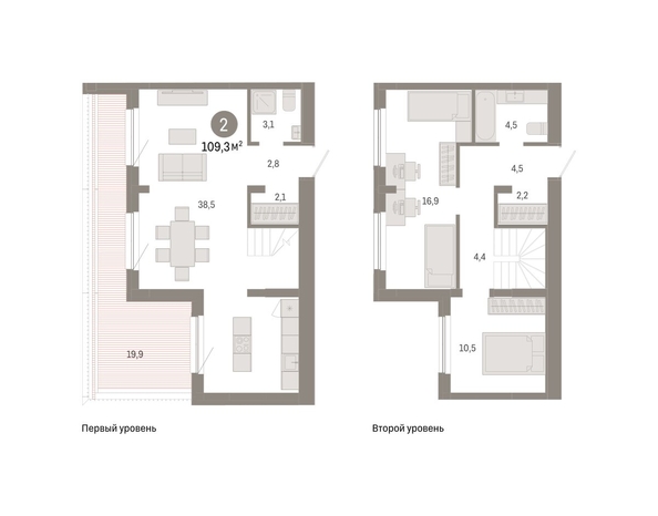 Квартира с кухней-гостиной и двумя спальнями в микрорайоне «Европейский берег». Особенности планировки: второй санузел, гардеробная, свободная планировка, терраса на крыше. № квартиры в нашей базе: ЕБ-ГП49-6-6.8.3. Номер объявления SD54-1035574.