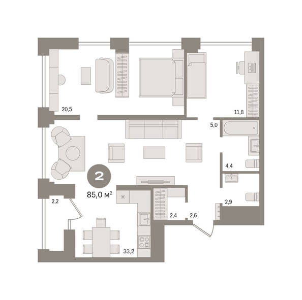 Квартира с кухней-гостиной и двумя спальнями в квартале «Мылзавод». Особенности планировки: второй санузел, гардеробная, лоджия, предчистовая отделка. № квартиры в нашей базе: МЛ-ГП4.2-9-9.16.7. Номер объявления SD54-1035588.