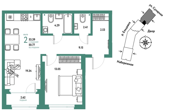 Новая квартира в ЖК «Страна.Береговая» напрямую от федерального застройщика «Страна Девелопмент».Продается 2–комнатная квартира на 5 этаже от застройщика “Страна Девелопмент”. Площадь квартиры 53,39 кв. м.Жилой комплекс «Страна.Береговая» — новый флагманский проект федерального застройщика «Страна Девелопмент» в Новосибирске. Дом на берегу Оби с захватывающими видами из окон. Три секции разной этажности с акцентной башней-доминантой образуют камерное пространство с закрытым двором и личным зелёным садом для отдыха.ПРЕИМУЩЕСТВАСвой приватный двор, окружённый зеленью, которая будет цвести весь год. Двор с релакс-пространством, спортивной зоной с воркаут и настольным теннисом. Детская площадка из природных материалов. Двор круглосуточно находится под видеонаблюдением.Парадные с зелёным оазисом из растений. Для комфорта мы предусмотрели тёплые тамбуры, в зонах ожидания разместили мягкие диваны. Также мы добавили возможность бесключевого доступа — по распознаванию лица или считыванию BLE-ключа.Спроектирована подземная парковка на 217 машиномест. Ваш личный транспорт всегда будет под защитой и видеонаблюдением — переживать о его сохранности не придётся. Въезд в паркинг осуществляется с помощью умной камеры по госномеру либо BLE-метке. А чтобы подняться к квартире, не нужно выходить на улицу — лифты отвезут на нужный этаж. Для гостей за территорией двора предусмотрена открытая гостевая парковка.ОТДЕЛКАКвартиры сдаются с предчистовой отделкой: произведена разводка электричества и отопления, выполнена стяжка пола, стены выровнены «под маяк», установлены розетки, выключатели и радиаторы. ДИЗАЙНЕРСКАЯ ОТДЕЛКАПри покупке квартиры в ЖК «Страна.Береговая» можно включить стоимость ремонта в ипотеку. Пять вариантов на выбор: хлопковая нить, серый шторм, белый камень, шалфей, голубой вереск. Включено всё — обои, ламинат, натяжной потолок и даже кондиционер. Также для вас есть четыре варианта ремонта в ванной — акриловая ванна с экраном, смеситель с лейкой, подвесной унитаз, зеркало с подсветкой. Останется только разместить мебель! СПОСОБЫ ПОКУПКИСотрудники «Страна Девелопмент» будут сопровождать вас на каждом этапе сделки, помогут получить одобрение по ипотеке или снизить ежемесячный платеж.- ипотека- рассрочка- с использованием материнского капитала - 100% оплата наличными