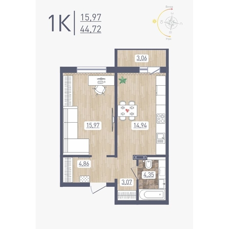 Продам 1-комнатную 44.72 кв.м. 3/17 этаж, монолит-кирпич, Новосибирск, Забалуева ул, 96.