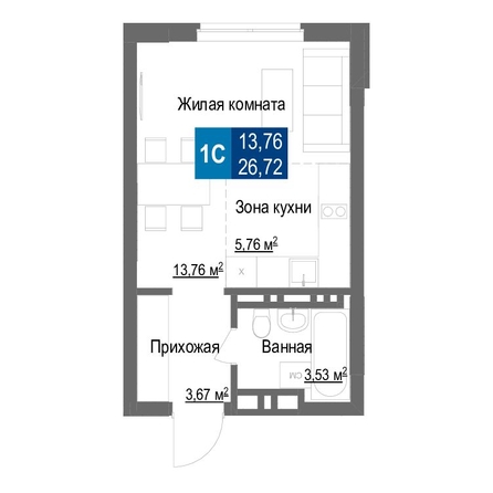 Общая площадь квартиры — 26.72 кв.м. Тип дома — монолит-кирпич. Компания-застройщик — Сибмонтажспецстрой.