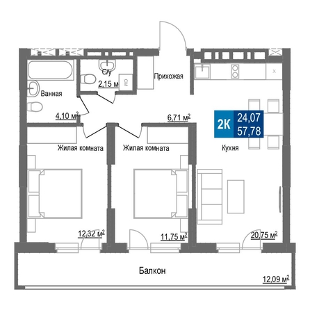 Общая площадь квартиры — 57.78 кв.м. Тип дома — монолит-кирпич. Компания-застройщик — Сибмонтажспецстрой.