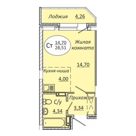 Общая площадь квартиры — 28.51 кв.м. Тип дома — монолит-кирпич. Компания-застройщик — БизнесСтрой.